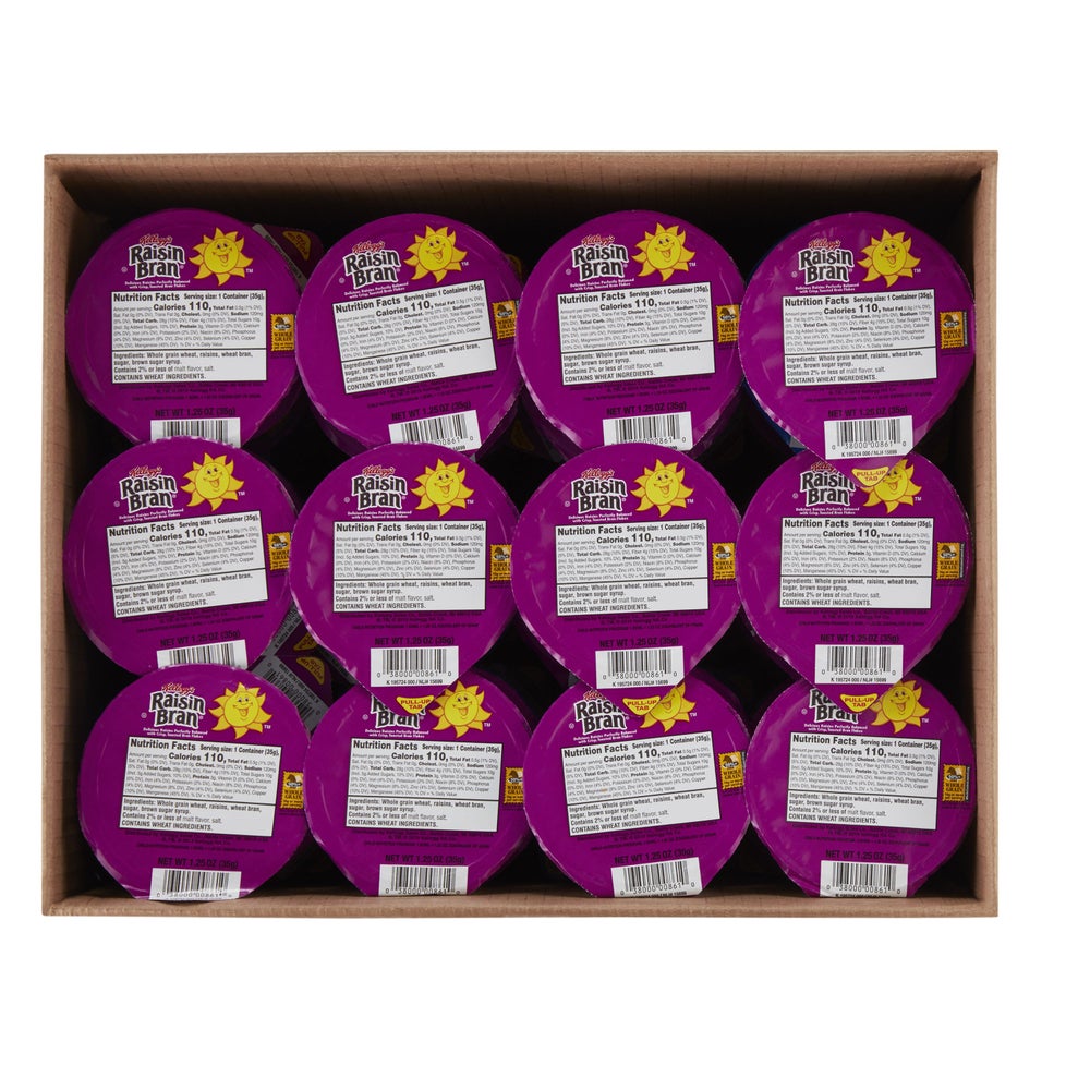 Empaquetado en 96 tazones individuales de 1.25 oz. Las hojuelas de salvado crujientes y tostadas y las pasas dulces hacen que este cereal sea irresistible. Con 16 g de grano integral por porción y una buena fuente de fibra, sin colorantes ni sabores artificiales, sin jarabe de maíz de alta fructosa.