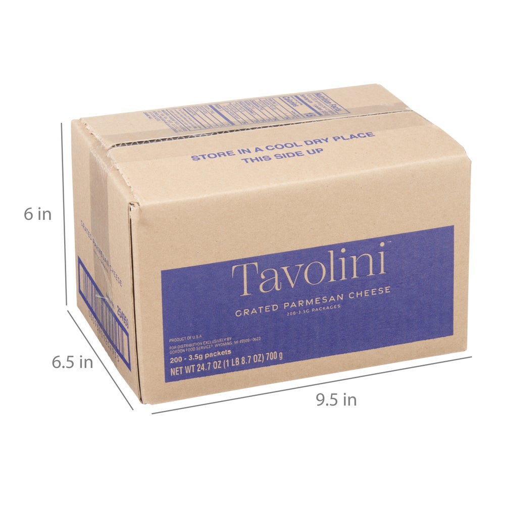 Queso parmesano, rallado, paquetes individuales, 3.5 Grm Cda, 200/Caj