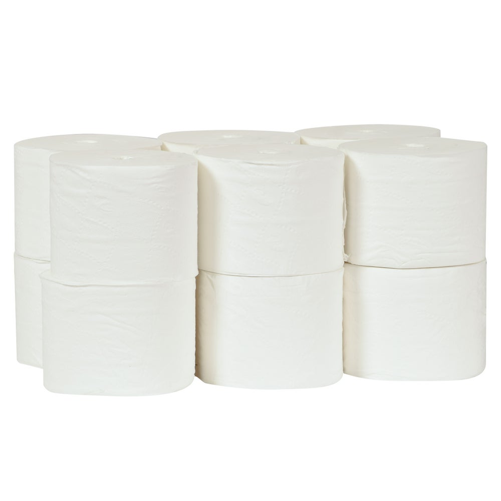 Papel higiénico de baño prémium de alta capacidad de 2 hojas, sin núcleo, blanco, 750 Cdd Rol, 12/Caj