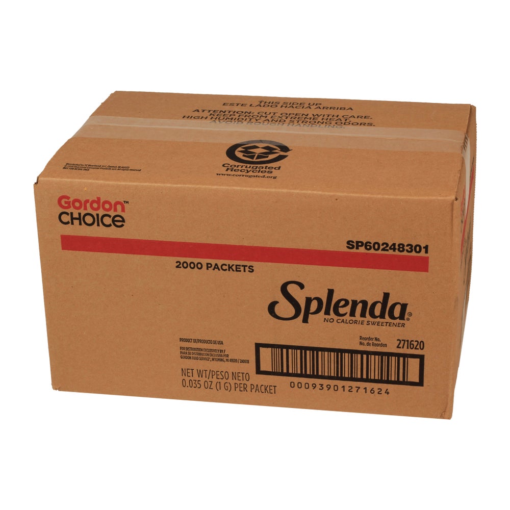 - Cada caja contiene 2000 sobres de Splenda de 0.03 onzas.