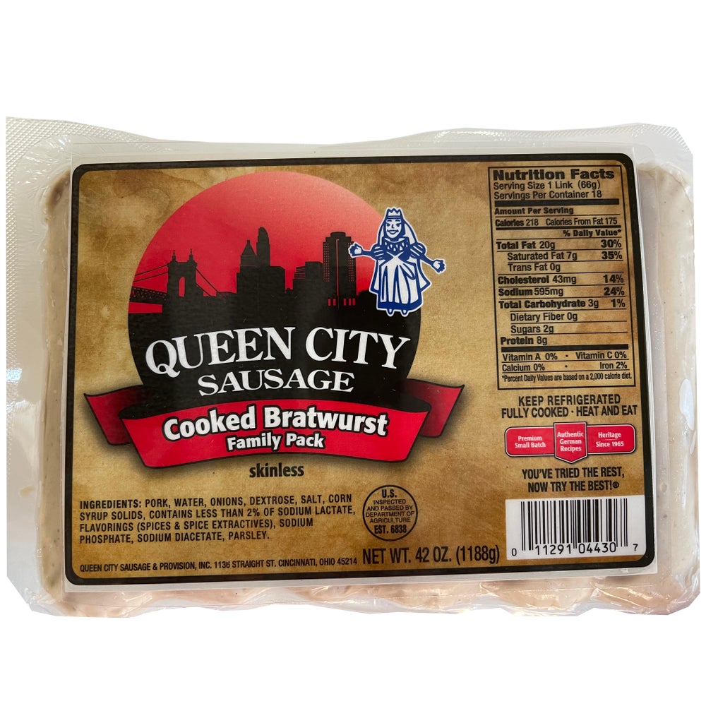 Bratwurst cocida, 42 Onz Paq, 6/Caj