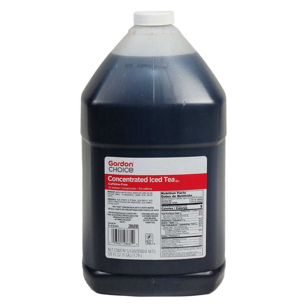 Té helado sin azúcar y descafeinado, concentrado en proporción de 5 a 1, 1 Gal Jar, 4/Caj