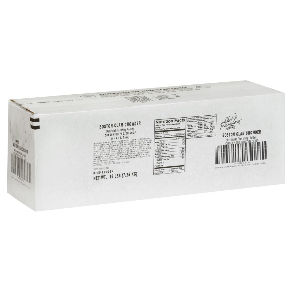 Sopa de almejas al estilo Boston, concentrado, congelado, 4 Libr Cub, 4/Caj