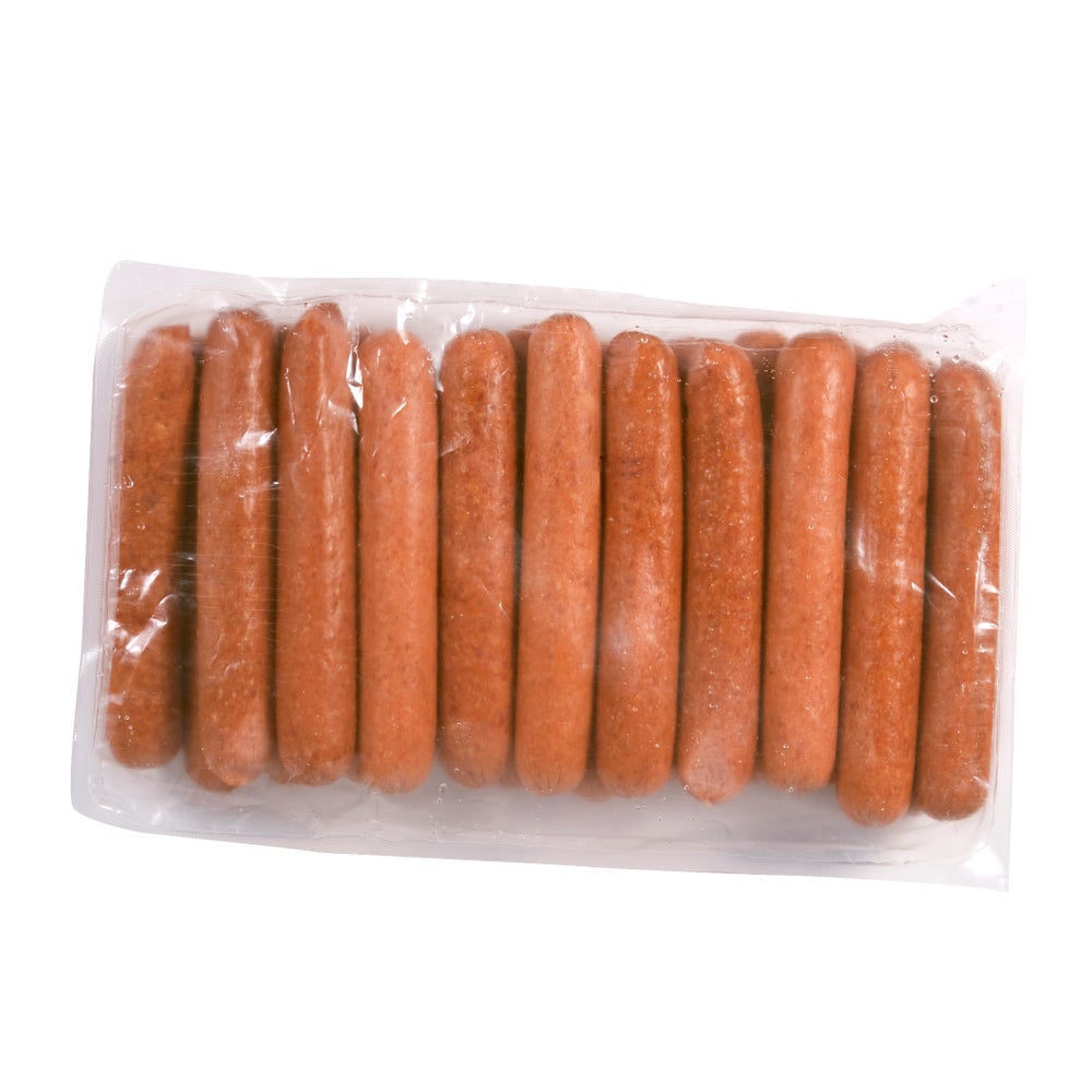 Salchicha de carne de res y cerdo ahumada, 6 3/4 pulgadas, enlaces, 4 unidades por libra, cocinadas, congeladas, 5 Libr Bol, 2/Caj