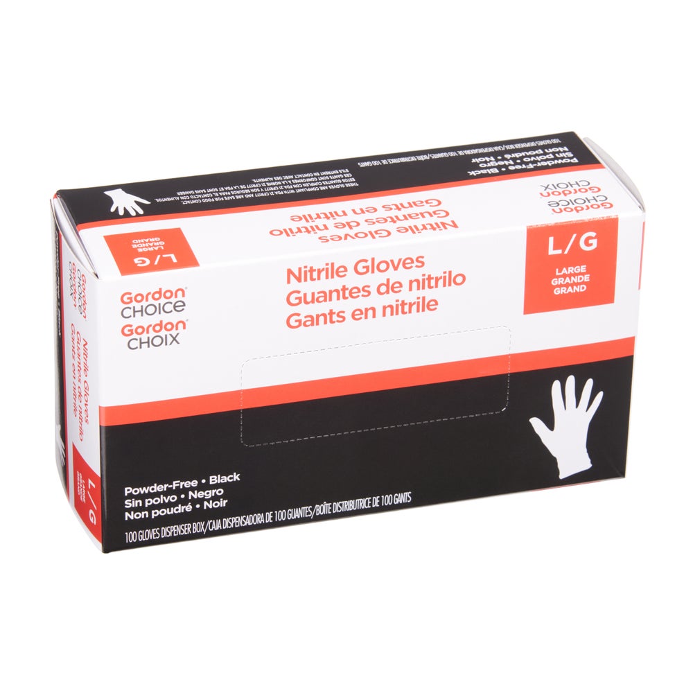 Guantes de nitrilo grandes, sin polvo, negros, 100 Cdd Cjs, 10/Caj