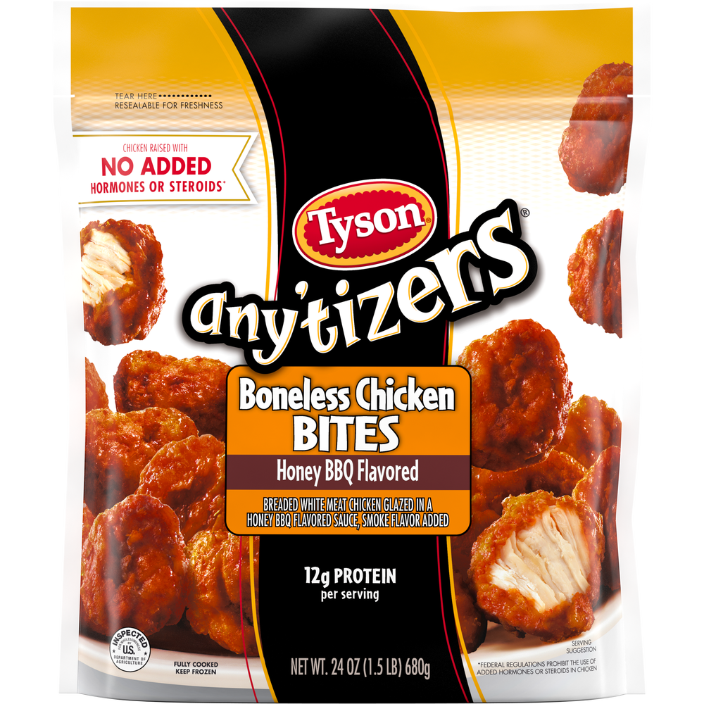 Bocaditos de pollo con miel a la barbacoa empanizados, totalmente cocinados, 24 Onz Bol, 8/Caj