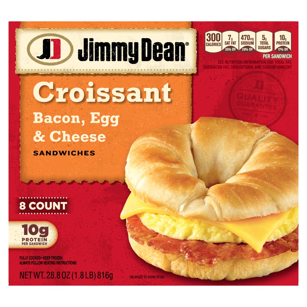 Sándwich de croissant de huevo, tocino y queso para el desayuno, 8 Cdd Cjs, 3/Caj