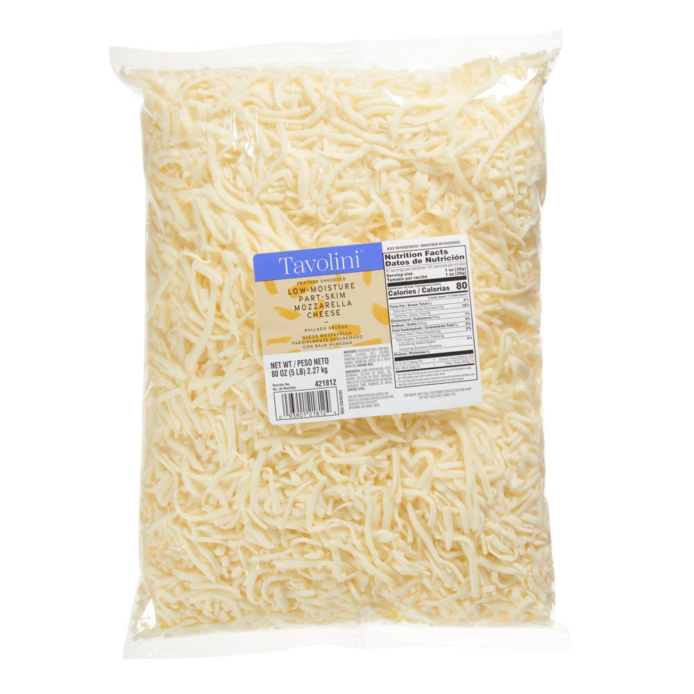 Queso mozzarella parcialmente desnatada, rallado en plumas, 5 Libr Bol, 4/Caj