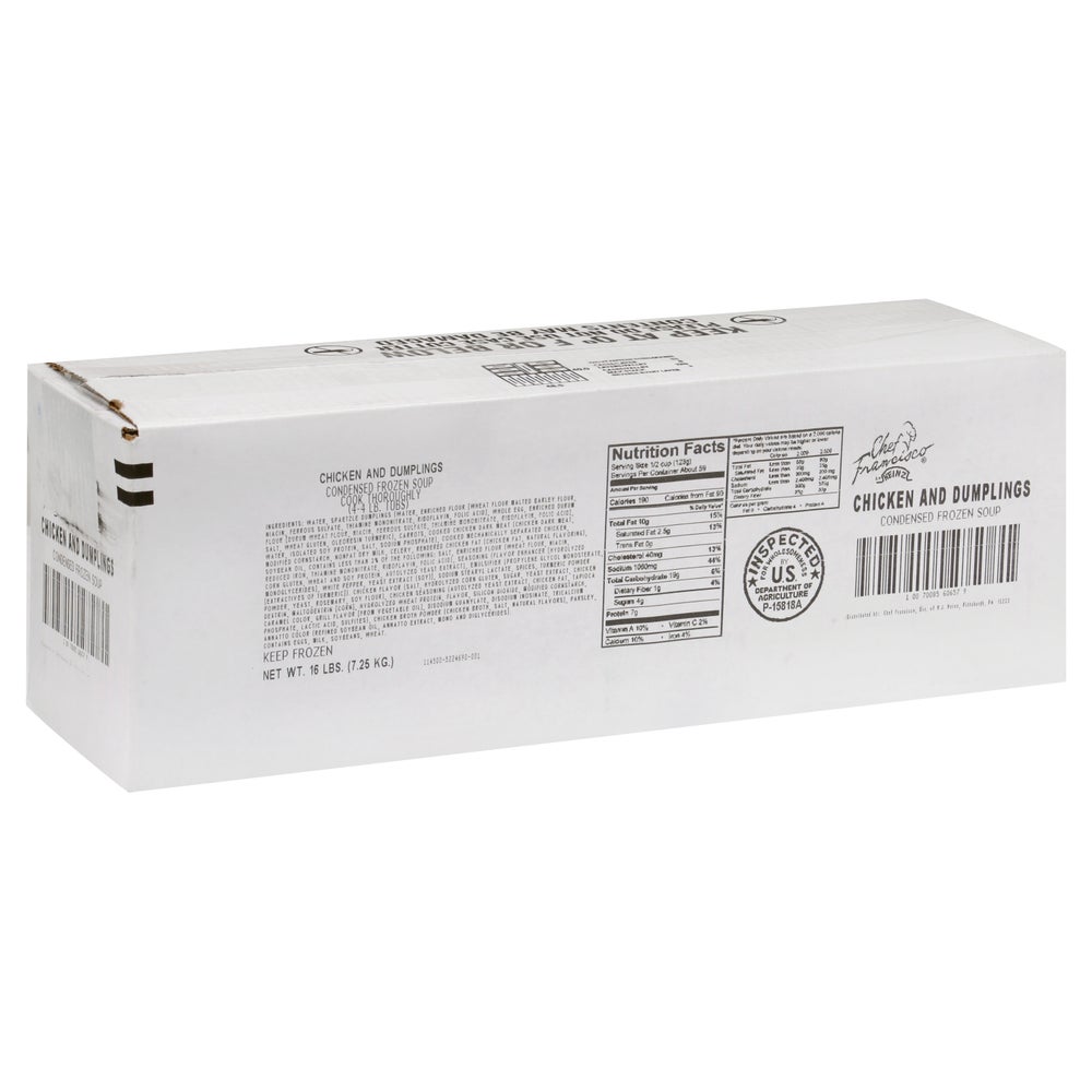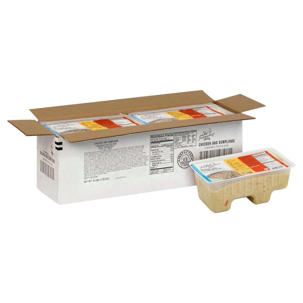 Sopa de pollo con albóndigas, concentrado, congelado