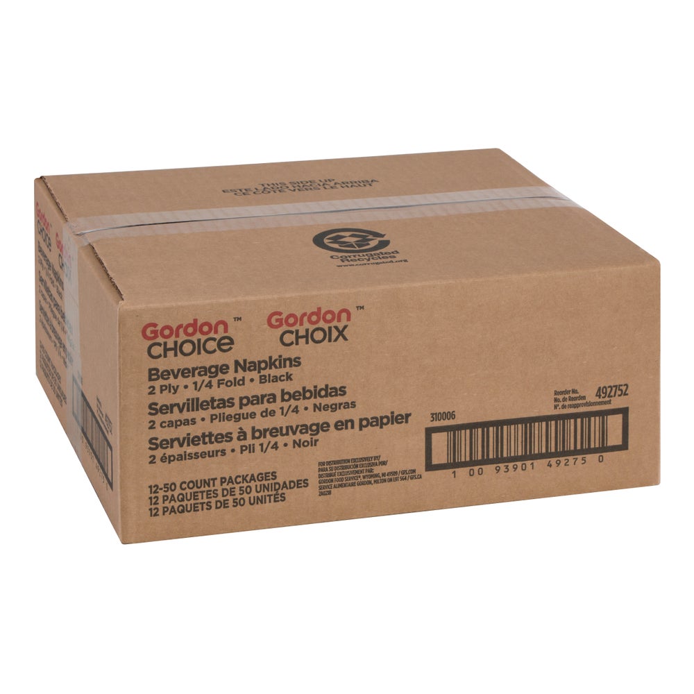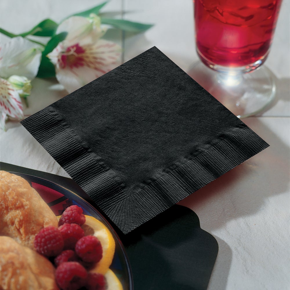 Servilletas de bebida en relieve de 2 capas, negras, doblado de 1/4, 10 x 10 pulgadas, envasadas en polietileno
