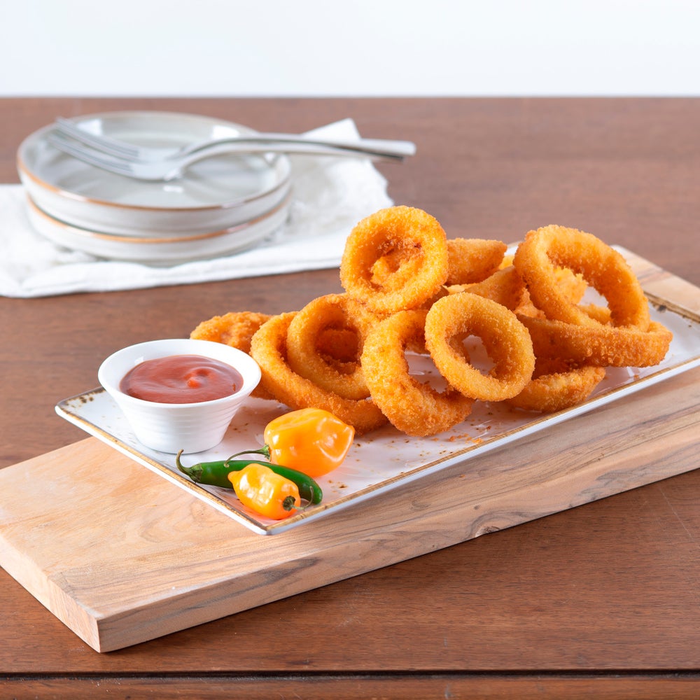 ¡Pocas cosas son mejores que aros de cebolla frescos y calientes! Las cebollas dulces en rodajas con mucho sabor se empanizan para obtener una apariencia dorada uniforme y consistente.