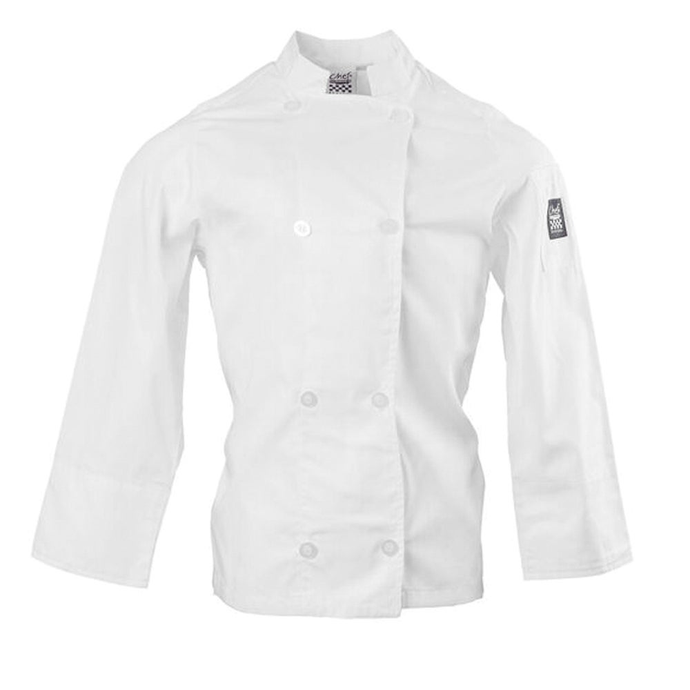 Chaqueta de chef, blanca, mediana (40-42 pulgadas), mezcla de poliéster y algodón