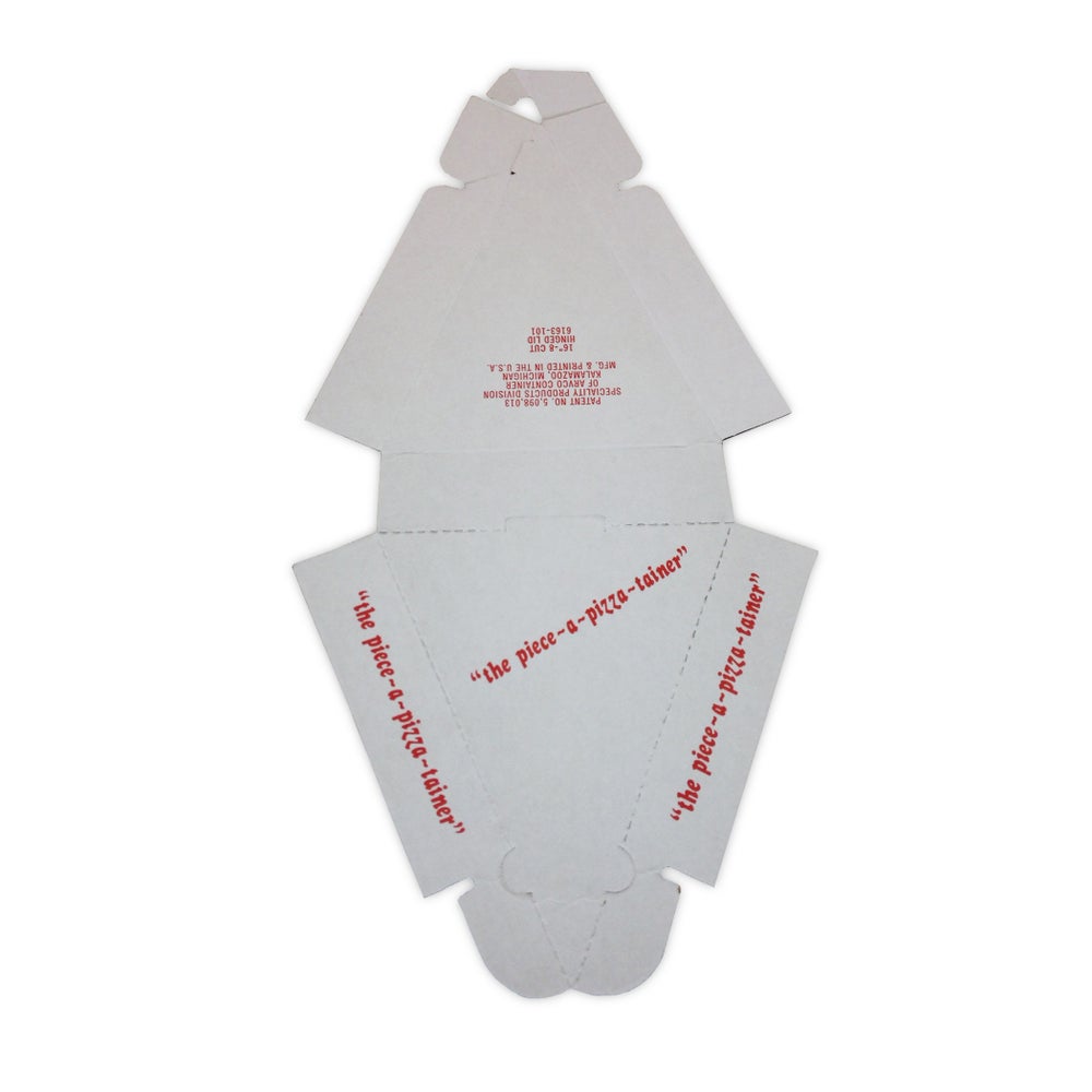 Estos contenedores para rebanadas de pizza están hechos de papel que cumple con las normas de la FDA y el USDA
