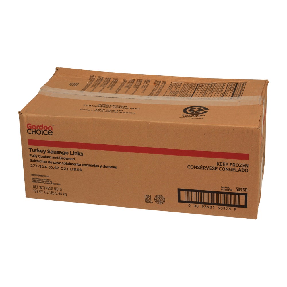 Salchicha de desayuno de pavo, eslabones, sin piel, 0,67 onzas, cocida, congelada