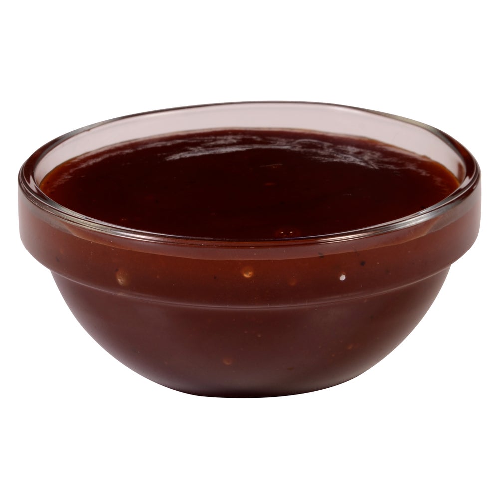 Esta salsa barbacoa oscura y ahumada con profundos tonos rojo-marrón se endulza extra con miel para obtener sabores contrastantes que encantan a los clientes.