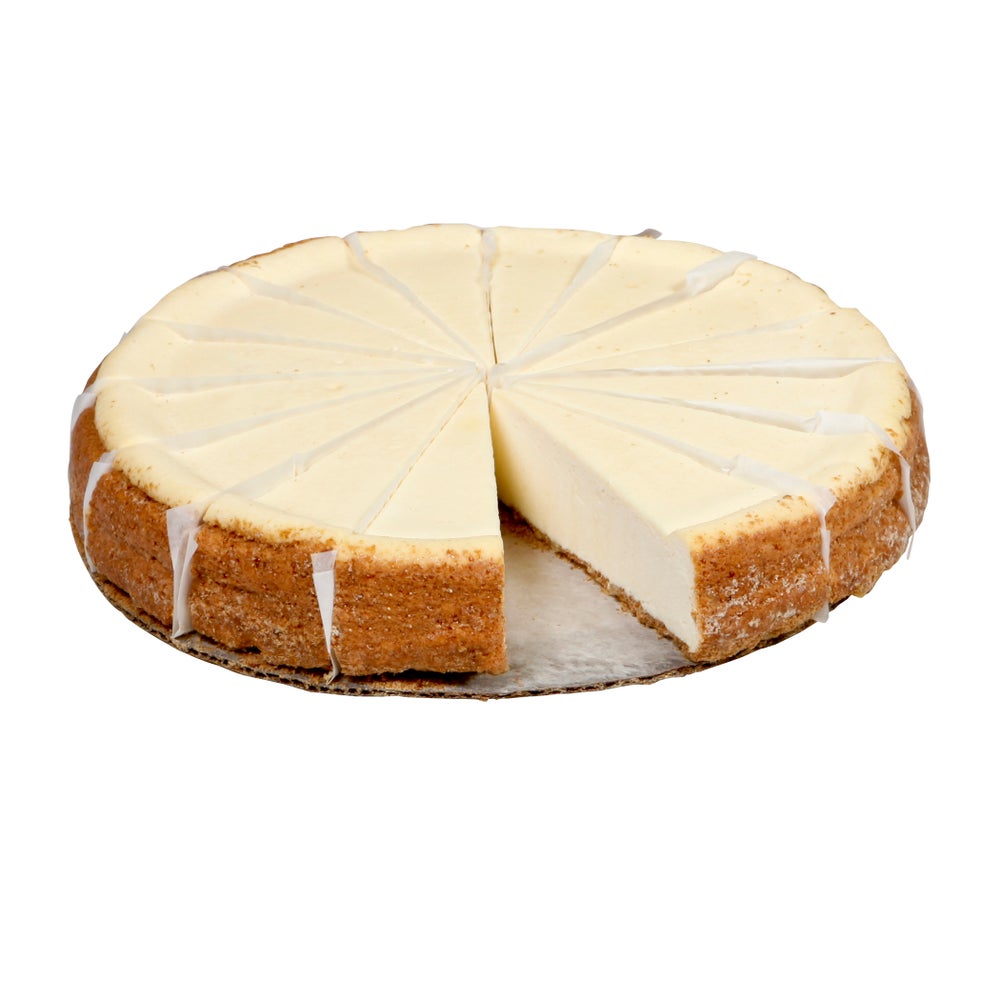 • a pesar de no tener azúcar añadida. Este postre de 1.5 pulgadas de alto se asienta sobre una base de galleta Graham. Cada tarta de queso contiene 16 rebanadas precortadas.