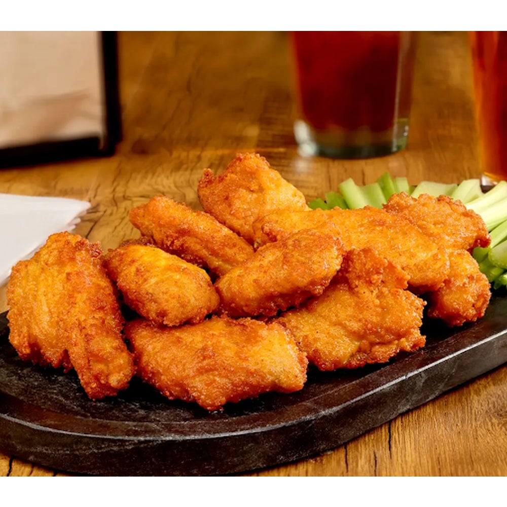 Alitas de pollo empanizadas picantes, cocidas, congeladas, 1 onza