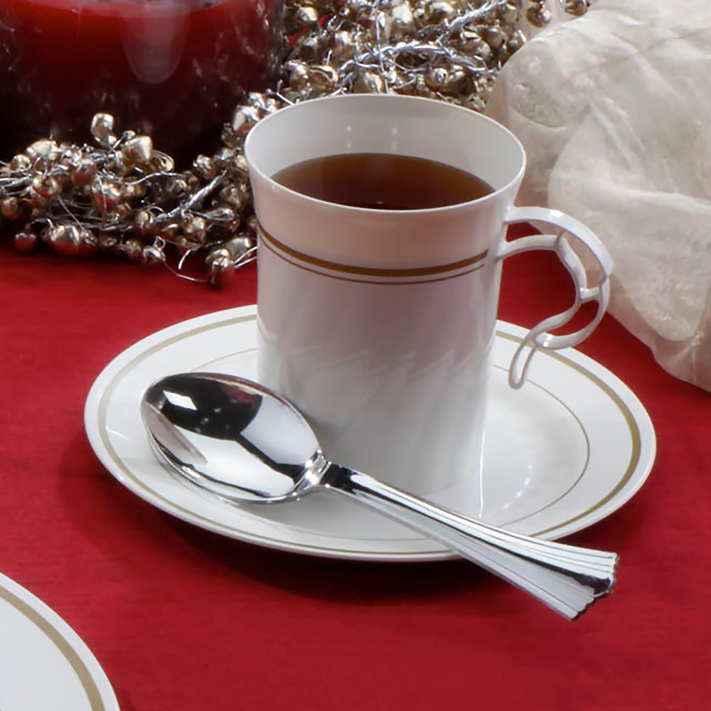 Estas cucharas metalizadas ofrecen el brillo y la chispa plateada del acero inoxidable sin el costo y la inconveniencia de las piezas permanentes. La sensación de peso completo y los cuellos extra fuertes resisten las exigencias más duras de los alimentos