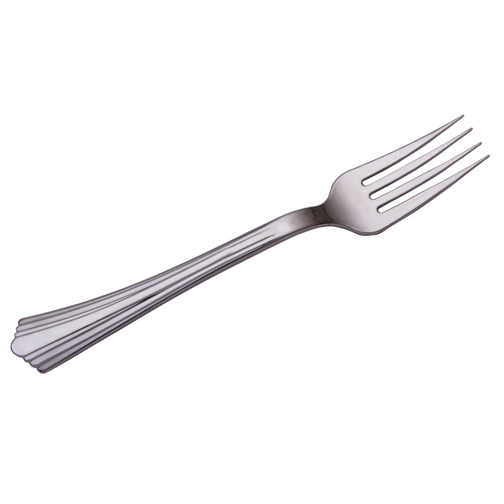 Estos tenedores metalizados ofrecen el brillo y el destello plateado del acero inoxidable sin el costo y la inconveniencia de las piezas permanentes. La sensación de peso pesado de tamaño completo y las púas extra fuertes resisten las exigencias de los alimentos más difíciles. Son ideales para todas las necesidades de catering, servicio de alimentos y entretenimiento.
