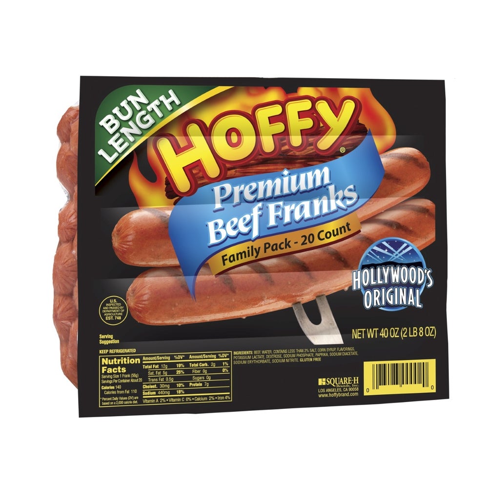 Hoffy Beef Franks, 6.75 Inch, 8 Count per Pound, Fresh, 1 Ounce, 2.5 Lb Package, 8/Case