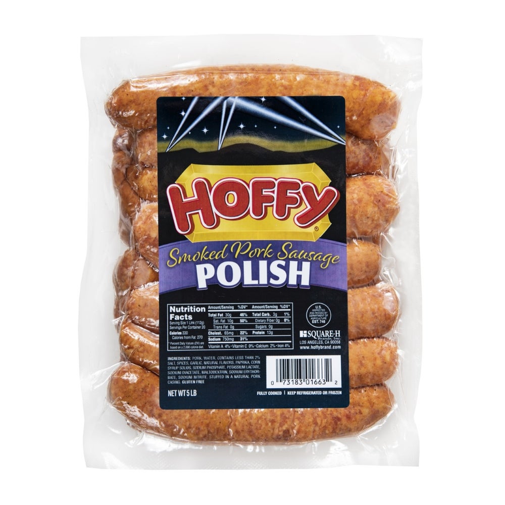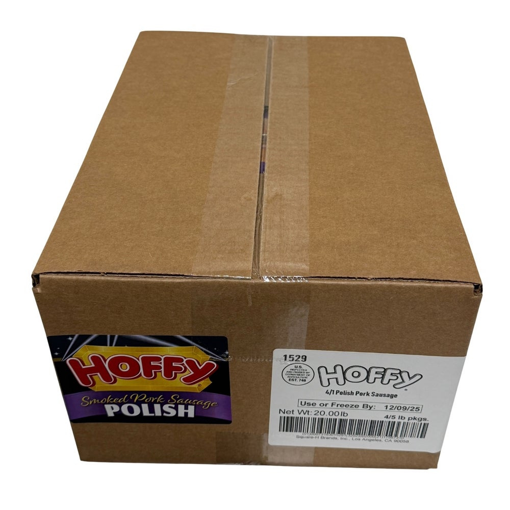 Hoffy Polish Pork Sausage, Natural Casing, 4 Count per Pound, Fresh, 1 Ounce, 5 Lb Package, 4/Case