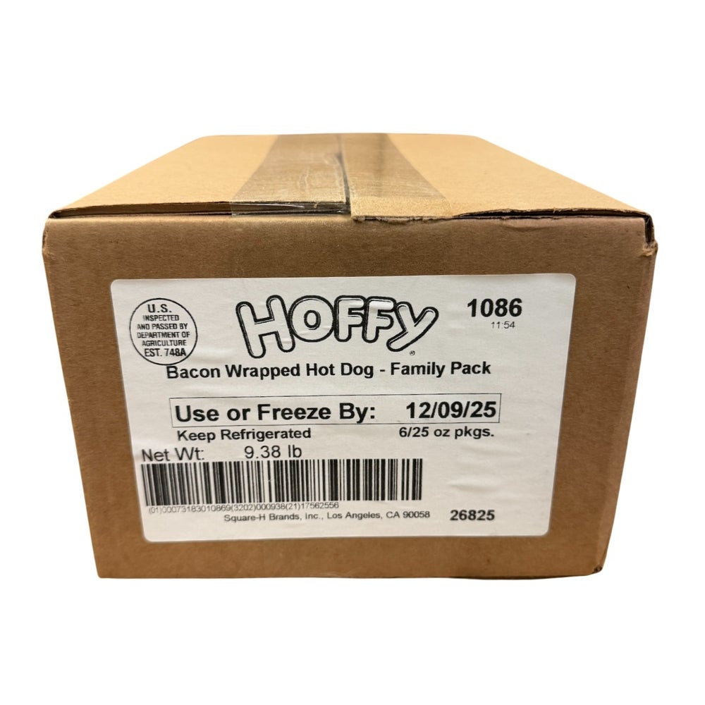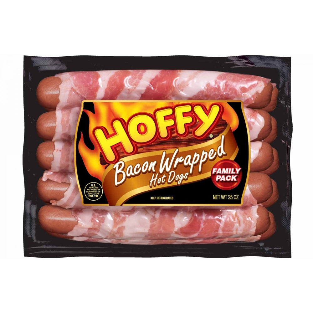 Hoffy Bacon-Wrapped Franks, 6.75 Inch, 6 Count per Pound, Fresh, 1 Ounce, 25 Oz Package, 6/Case