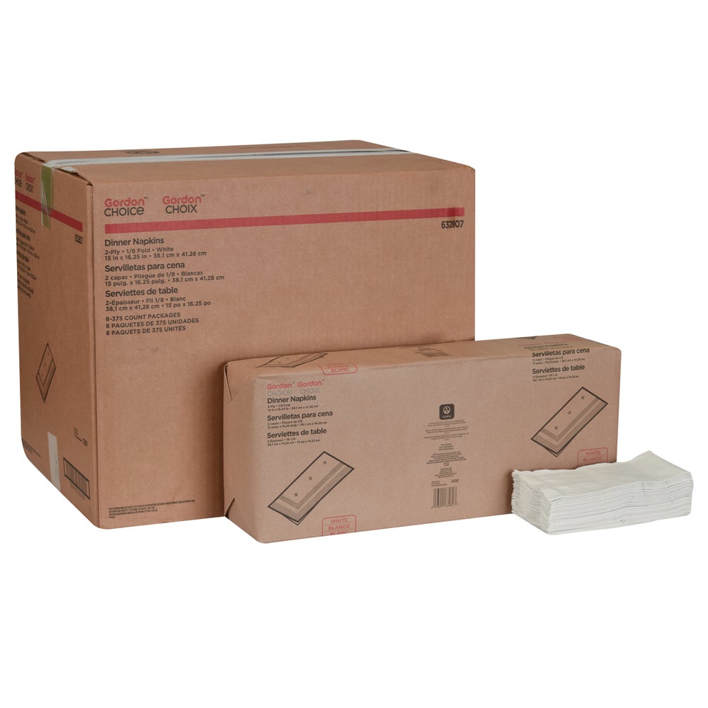 Servilletas de papel para la cena con relieve de 2 capas, blanco, doblado 1/8, 15 x 16,25 pulgadas, 375 Cdd Paq, 8/Caj