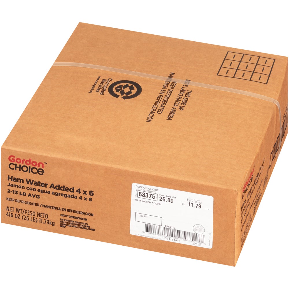 Jamón de agua añadida, sin hueso, fresco, 4 x 6 pulgadas, 13 Libr Paq, 2/Caj