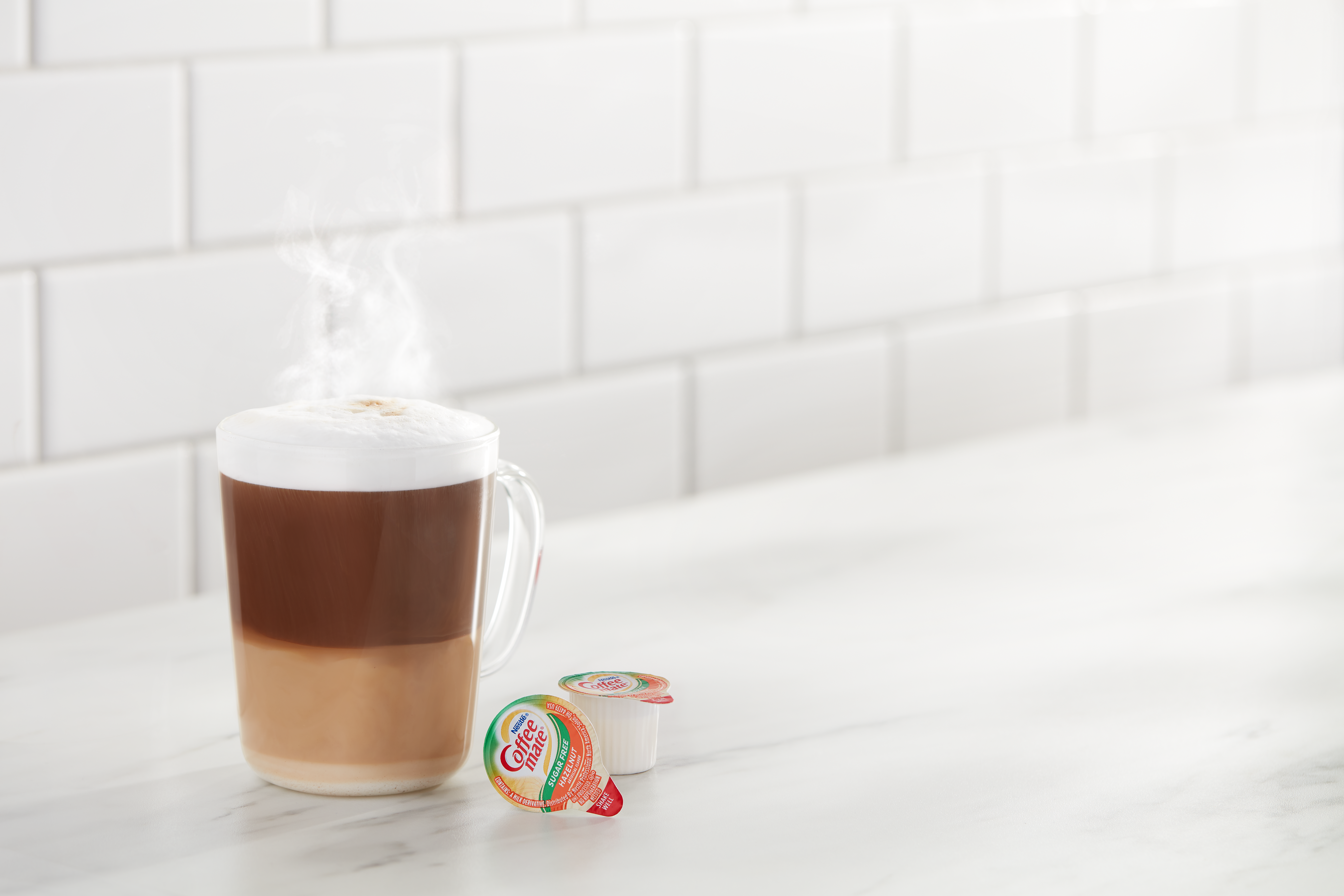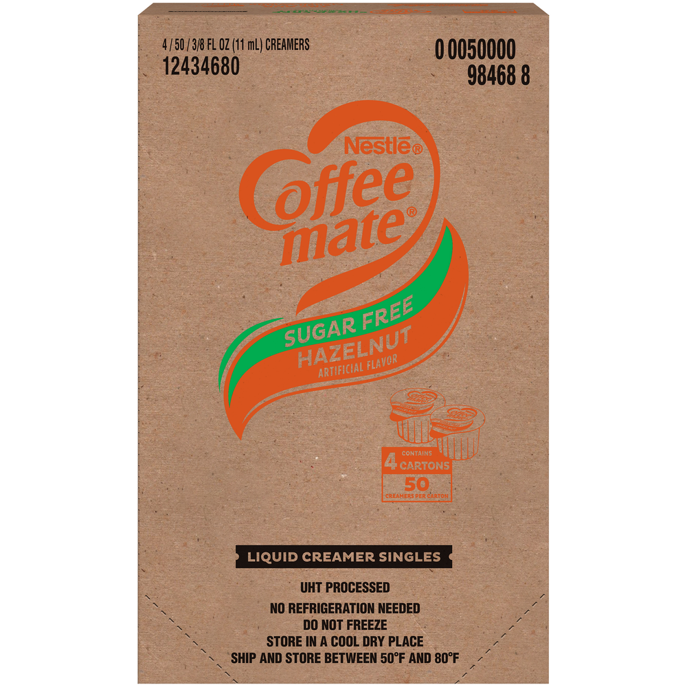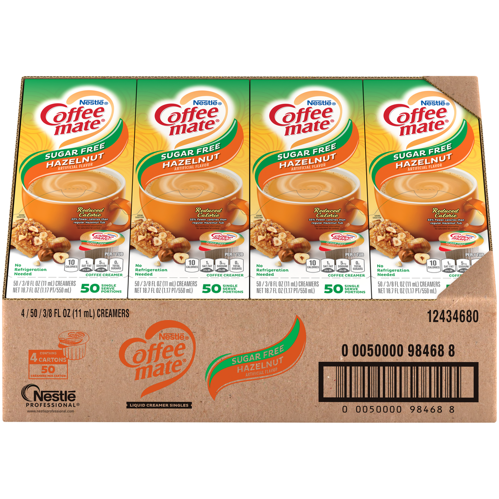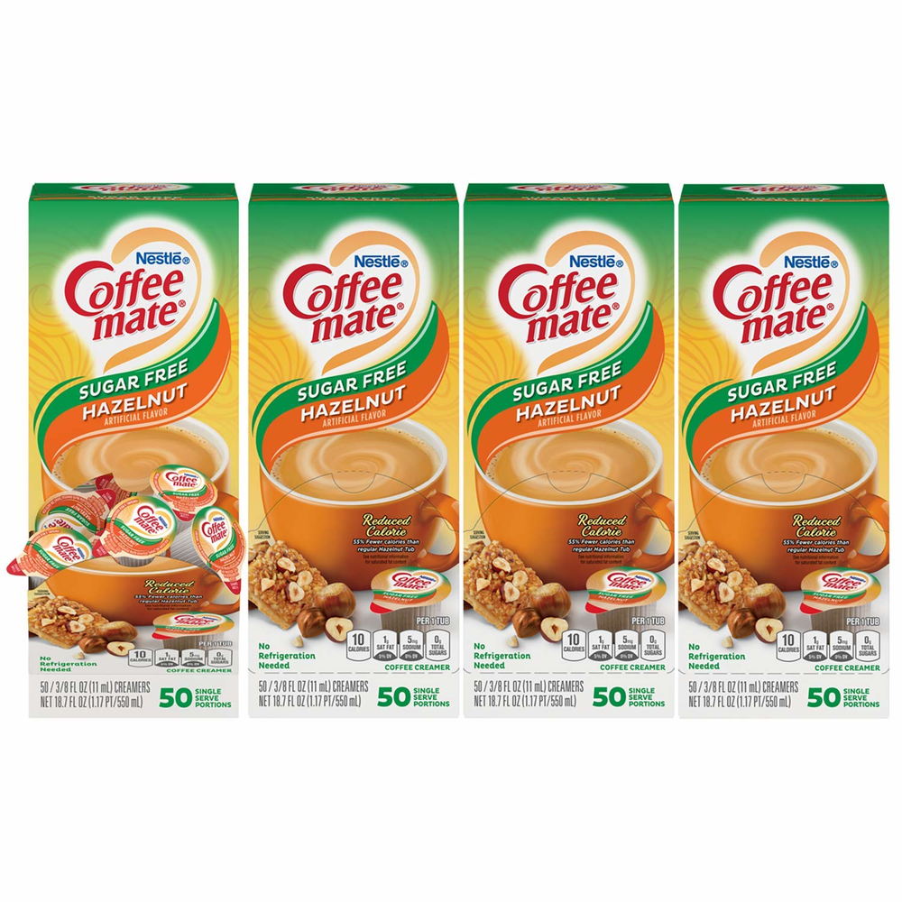 Creamer Cups, Líquido, Avellana, Sin Azúcar, Estable, Monodosis, Caja de 50 Unidades