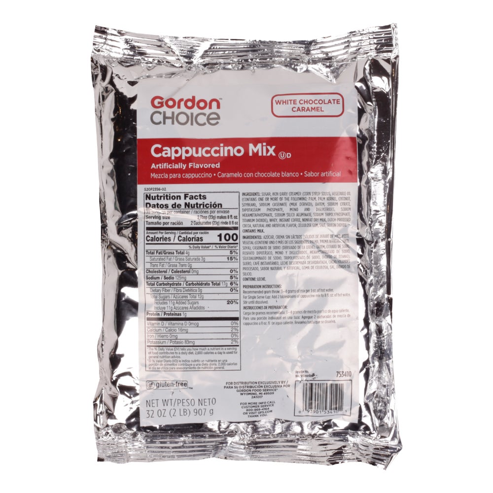 Mezcla de capuchino de caramelo con chocolate blanco en polvo