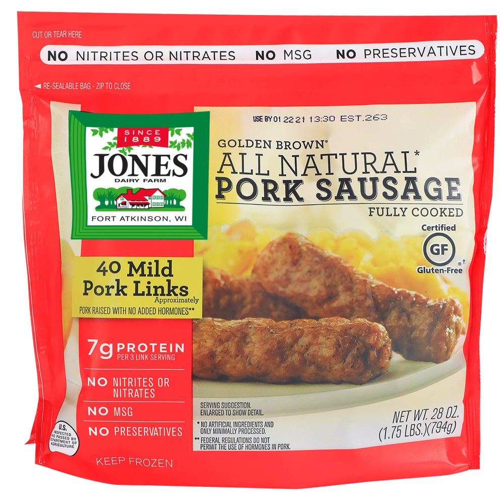 Salchichas de cerdo para desayuno completamente cocidas de Links, 28 Onz Paq, 8/Caj