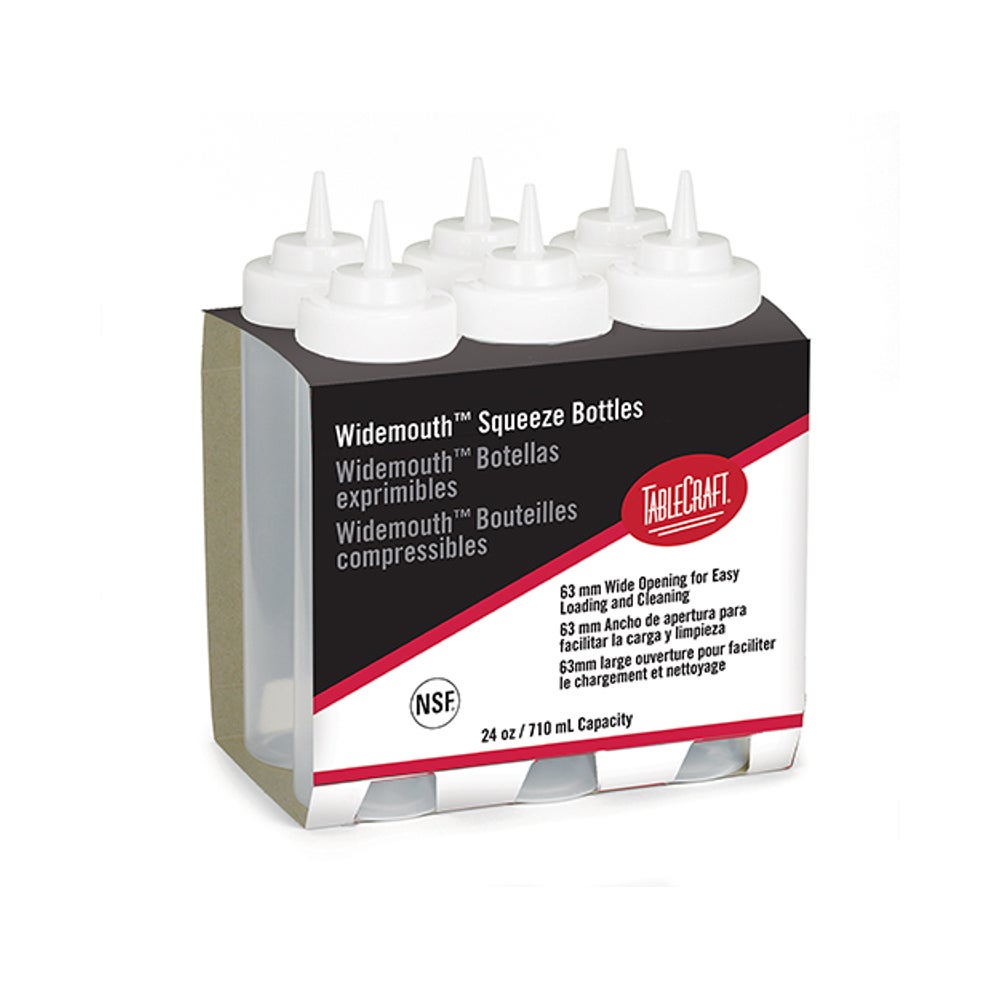 Botellas exprimibles de boca ancha de 24 onzas, transparente, polietileno, 6 Cdd Paq, 8/Caj
