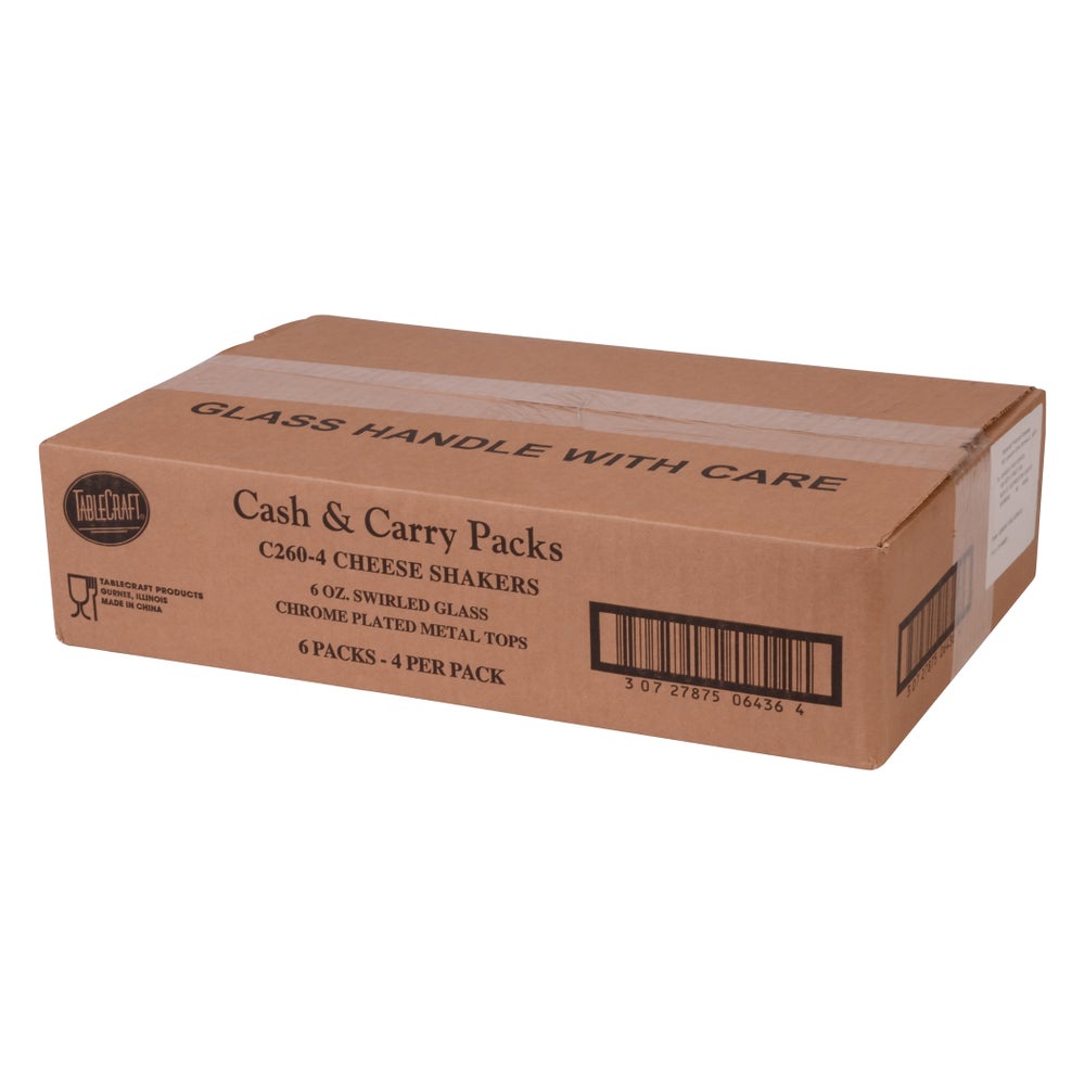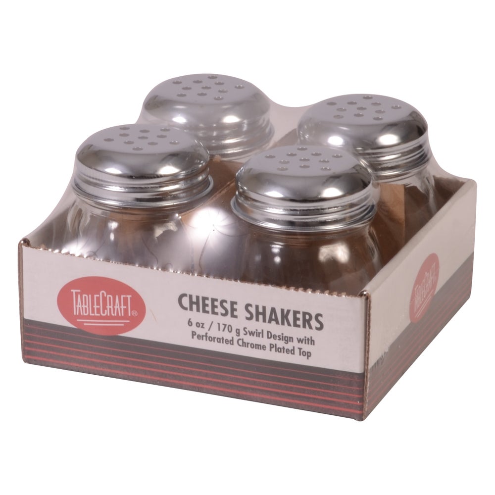 6 oz - Salero y pimentero de queso rallado, transparente, de vidrio con tapas de metal cromado, 4 Cdd Paq, 6/Caj