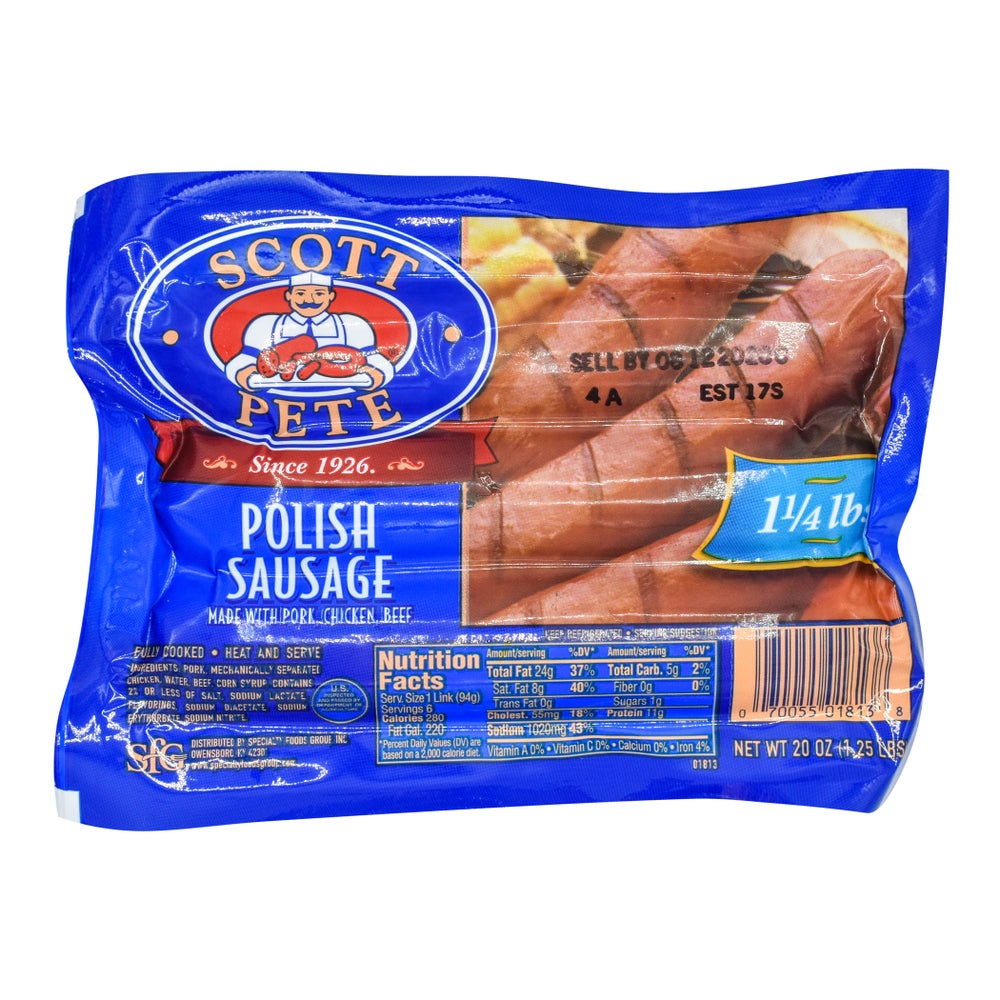 Salchicha polaca suave de cerdo, pollo y carne de res, 20 Onz Paq, 12/Caj
