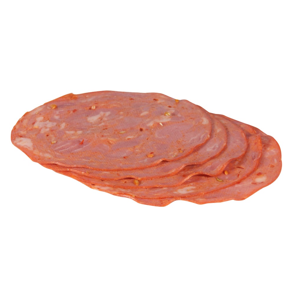 - Enrollado e inyectado con hojuelas de pimiento rojo, pimentón y otras especias, esta capicola se ahuma con las mejores mezclas de manzana e hickory.