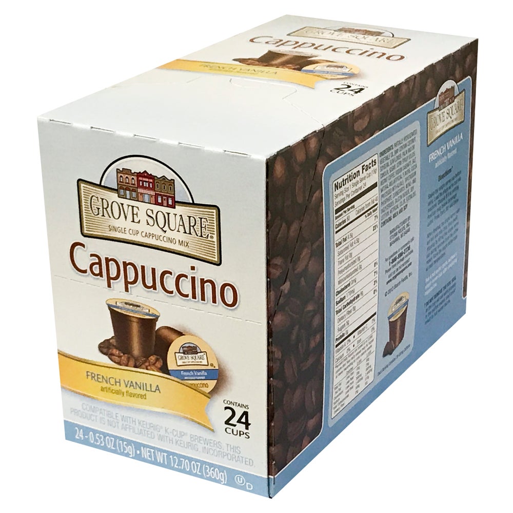 Mezcla de capuchino individual sabor vainilla francesa, tazas, compatible con máquinas Keurig, 24 Cdd Cjs, 4/Caj