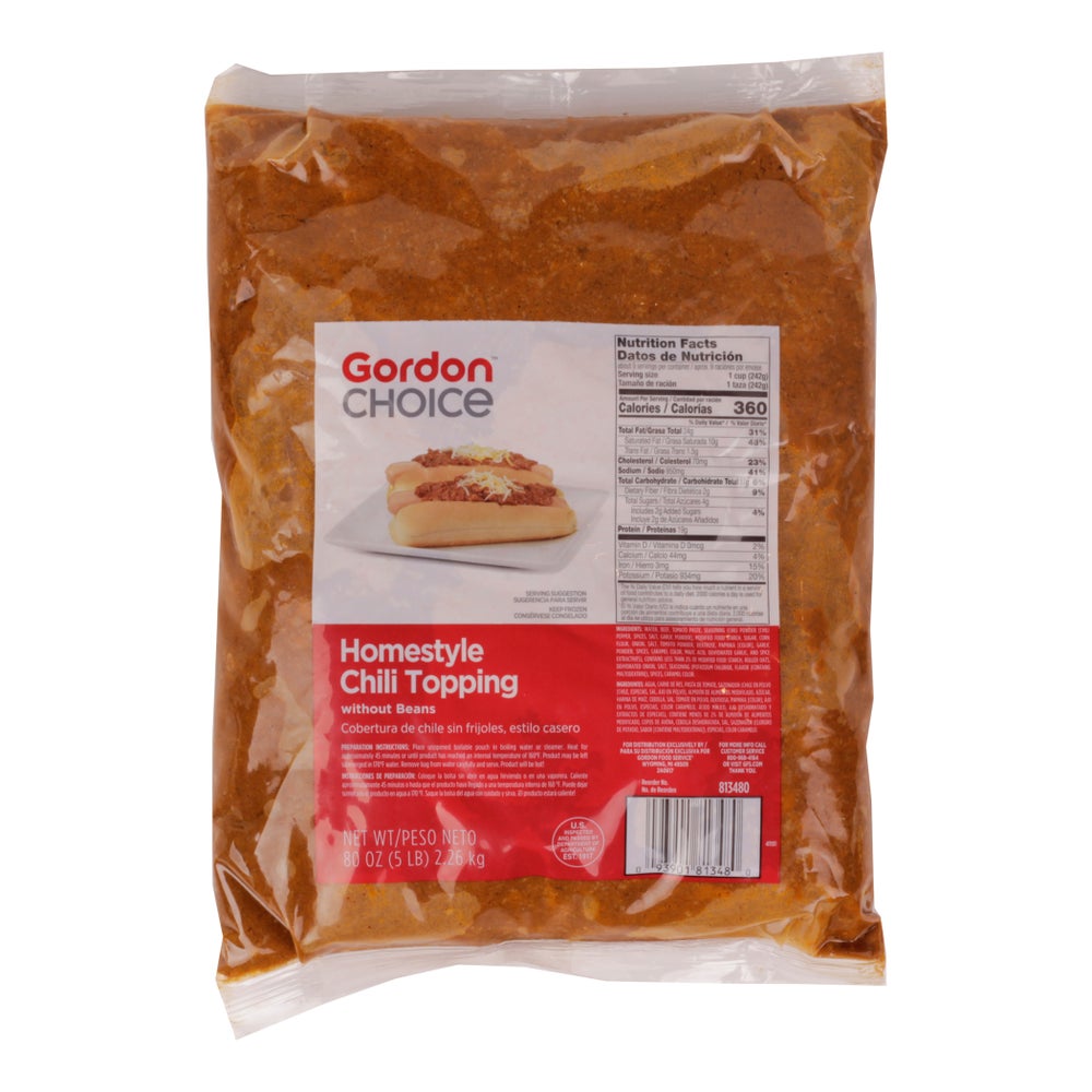 Chili coney estilo casero, sin frijoles, listo para servir, congelado, 5 Libr Bol, 4/Caj
