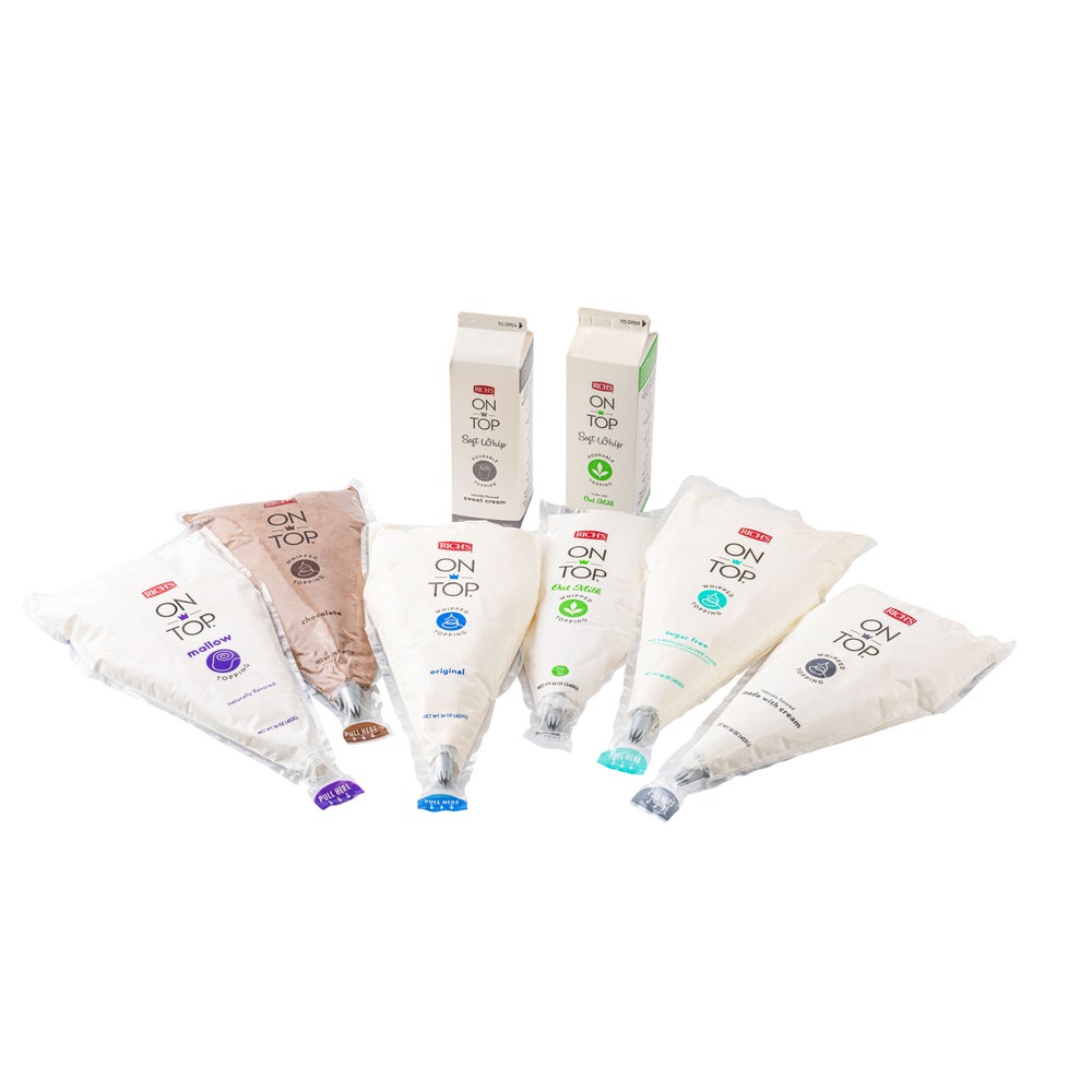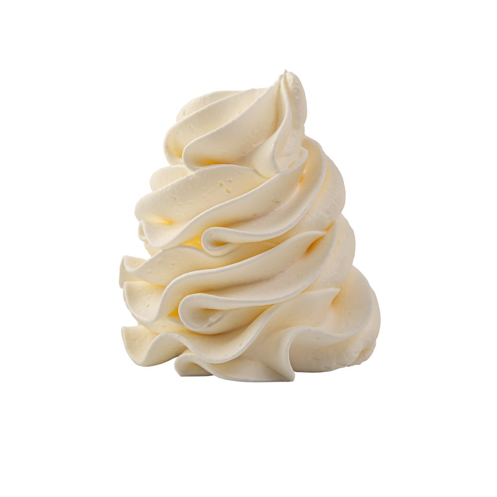 Esta cobertura batida está hecha con una combinación de ingredientes lácteos y no lácteos y tiene el sabor de crema real. Viene en una manga pastelera con una punta decoradora y un sello fácil de abrir.